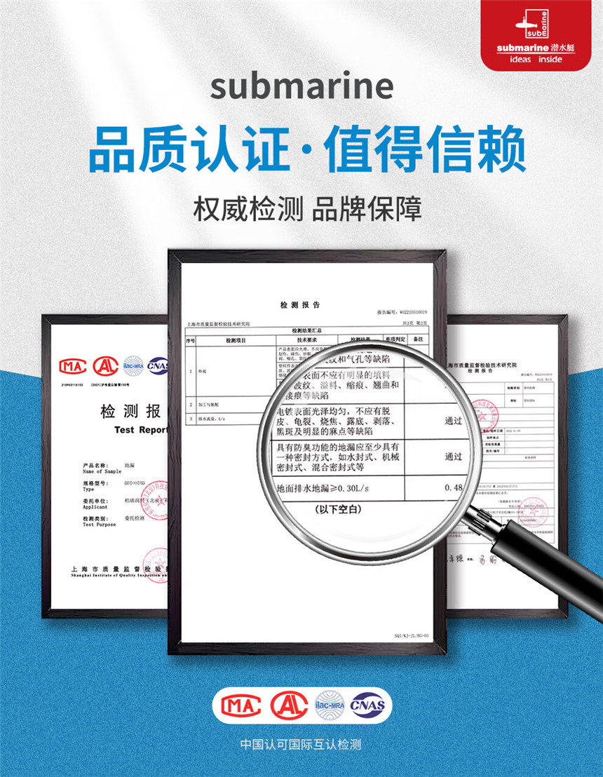 submarine潛水艇一直致力于新型地漏系統(tǒng)解決方案及相關(guān)衛(wèi)浴產(chǎn)品的研發(fā)設(shè)計(jì)制造和推廣而倍受推崇,是專業(yè)的地漏系統(tǒng)供應(yīng)商。公司了解用戶對(duì)地漏的需求,開發(fā)了功能獨(dú)特的防臭系列地漏,并結(jié)合時(shí)尚元素開發(fā)各具特色面板樣式,使地漏產(chǎn)品成為家庭裝修中一個(gè)重要的亮點(diǎn)。
